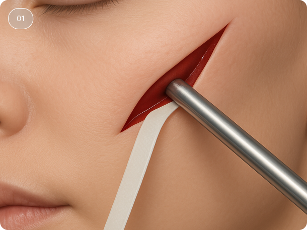 - รูปแบบการผ่าตัด : เอ็กซ์เรย์ โครงกระดูกเพื่อกำหนดรูปร่างของกระดูก โหนกแก้มตำแหน่งของเส้นประสาทบริเวณนั้นได้อย่างถูกต้องและกำหนดจุดที่จะทำการผ่าตัด